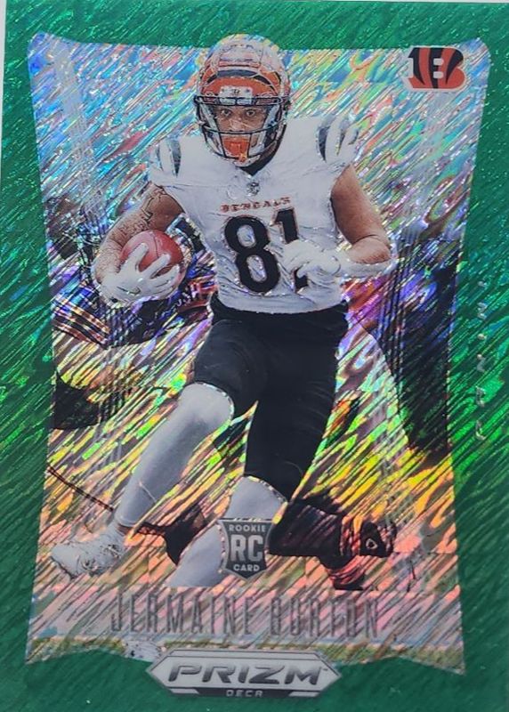 Auctions Ending Soon for Jermaine Burton 2024 Prizm Deca #63 FOTL Green Shimmer /12 Rookie RAW