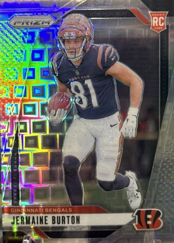 This card is 1 of 98 Jermaine Burton's card variations in the 2024 Prizm set being tracked by Sports Card Investor, including Base, Choice Blue Yellow Green, Choice Silver, Disco, and Green.