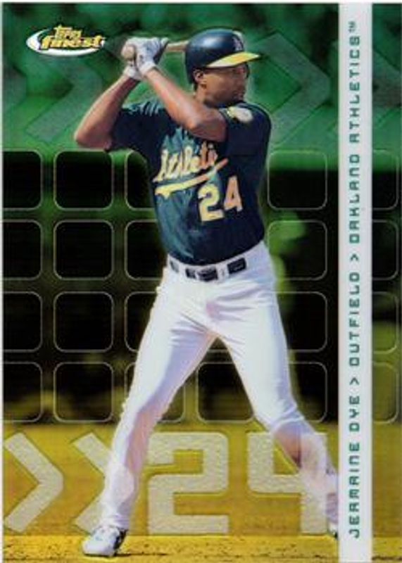 The Jermaine Dye 2002 Topps Finest #33 Refractor /499 card is 1 of 3 Jermaine Dye's card variations in the 2002 Topps Finest set being tracked by Sports Card Investor, including Base, and X-Fractor /299.