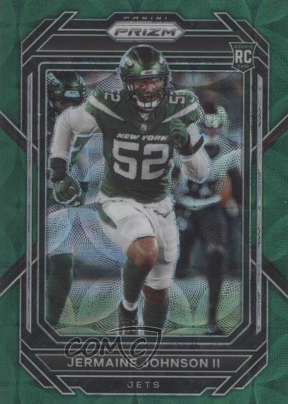 This card is 1 of 51 Jermaine Johnson II's card variations in the 2022 Prizm set being tracked by Sports Card Investor, including Base, Green, Green Ice, Light Blue, and No Huddle.
