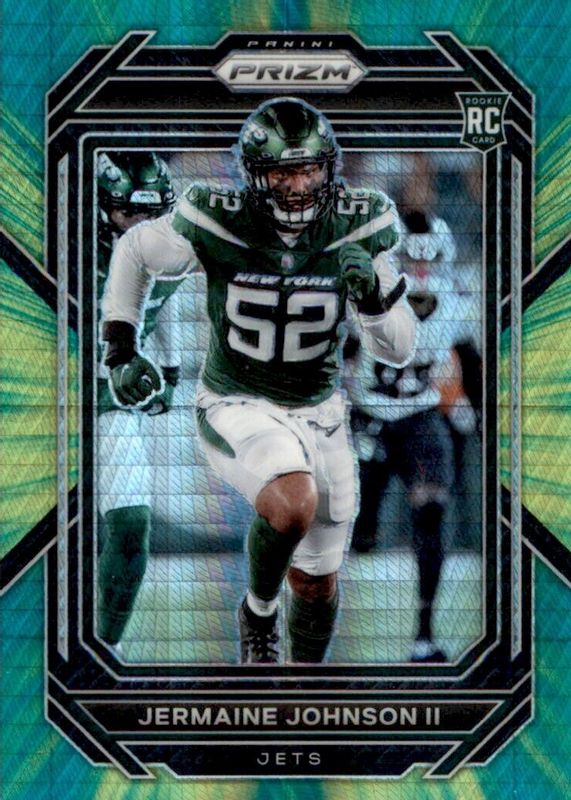 This card is 1 of 51 Jermaine Johnson II's card variations in the 2022 Prizm set being tracked by Sports Card Investor, including Base, Green, Green Ice, Light Blue, and No Huddle.