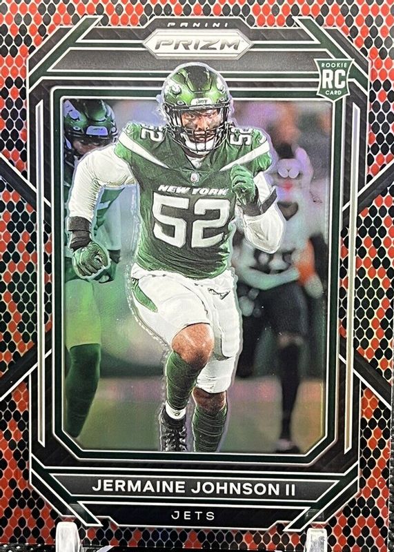 The Jermaine Johnson II 2022 Prizm #375 Snakeskin /(SSP) Rookie card in Raw condition has not changed in price in the last 30 days and was last sold for $74.00 .