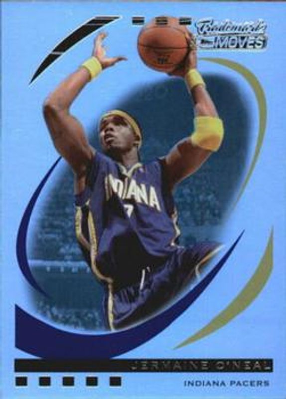 The Jermaine O'Neal 2006 Topps Trademark Moves #71 Rainbow /35 card is 1 of 5 Jermaine O'Neal's card variations in the 2006 Topps Trademark Moves set being tracked by Sports Card Investor, including Base /149, Foil /75, Wood /19, and Wood Red /10.