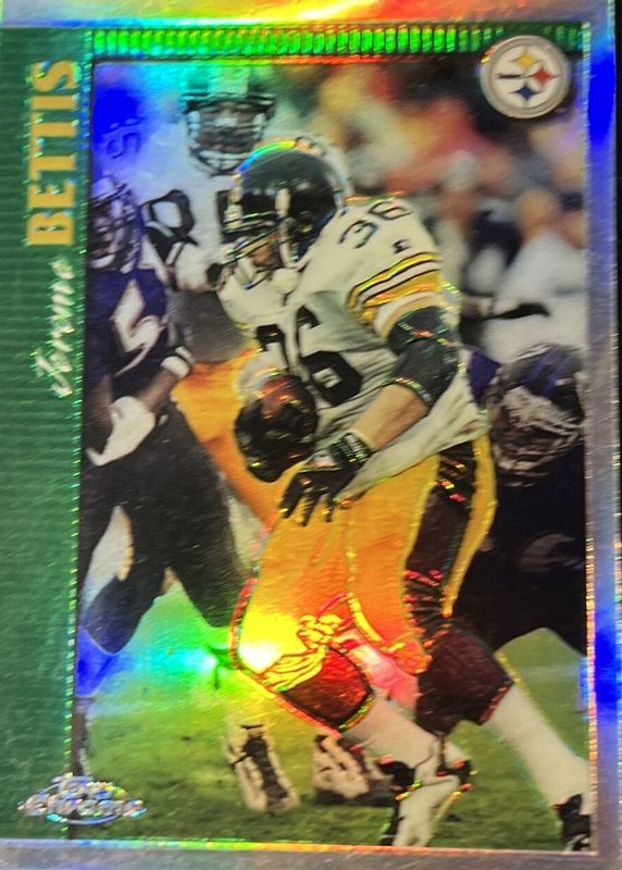 This card is 1 of 4 Jerome Bettis' card variations in the 1997 Topps Chrome set being tracked by Sports Card Investor, including Base, Season's Best, and Season's Best - Refractor.