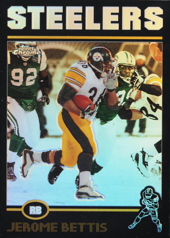 This card is 1 of 2 Jerome Bettis' card variations in the 2004 Topps Chrome set being tracked by Sports Card Investor, including Refractor.