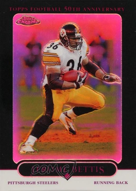 This card is 1 of 3 Jerome Bettis' card variations in the 2005 Topps Chrome set being tracked by Sports Card Investor, including Refractor, and Gold X-Fractor /399.