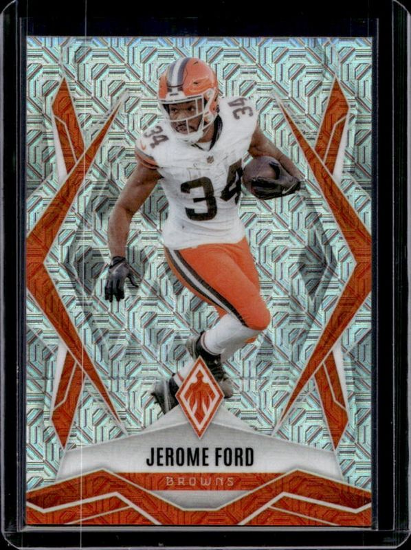 The Jerome Ford 2025 Phoenix #3 Ash Mojo /25 card is 1 of 85 Jerome Ford's card variations in the 2025 Phoenix set being tracked by Sports Card Investor, including Base, Silver, Silver Hyper, Silver Lava, and Silver Lazer.