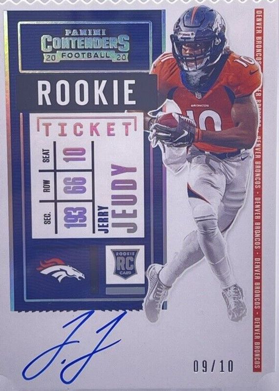 This card is 1 of 21 Jerry Jeudy's card variations in the 2020 Contenders set being tracked by Sports Card Investor, including Rookie Ticket Auto, Rookie Ticket Auto Variation, Rookie Ticket Auto - Red Zone Ticket, Rookie Ticket Auto Variation - Red Zone Ticket, and Rookie Ticket Auto Variation - Ticket Stub (/10).