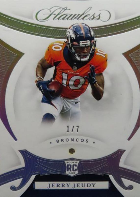 The Jerry Jeudy 2020 Flawless #114 Rookie Gems - Diamonds /7 card in Raw condition has not changed in price in the last 30 days and was last sold for $51.00 .