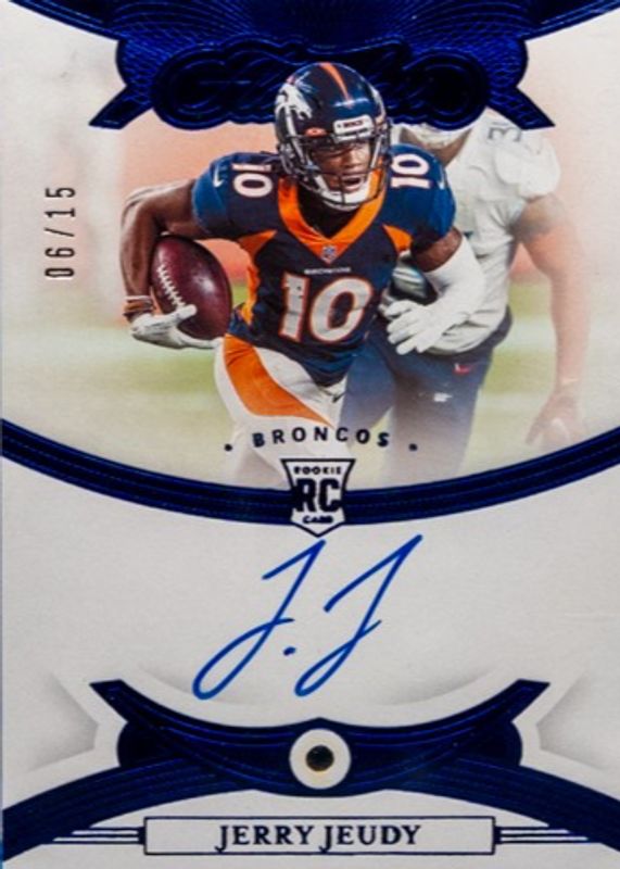 The Jerry Jeudy 2020 Flawless #RGS-JEU Rookie Gems Signatures - Sapphire /15 card in Raw condition has not changed in price in the last 30 days and was last sold for $49.99 .