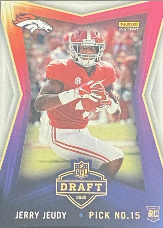 The Jerry Jeudy 2020 Panini Instant #15 Draft Night (/893) Rookie card in Raw condition has not changed in price in the last 30 days and was last sold for $5.50 .