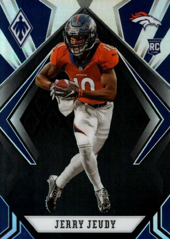 This card is 1 of 16 Jerry Jeudy's card variations in the 2020 Phoenix set being tracked by Sports Card Investor, including Base, Color Burst, Fire Burst, Silver, and Red /299.