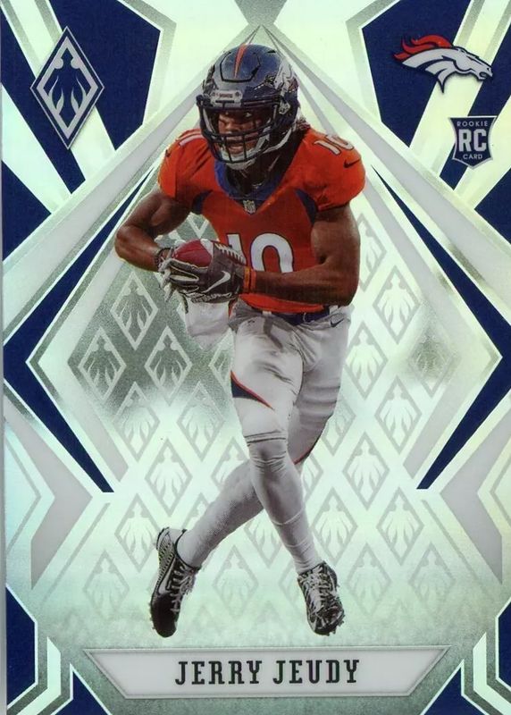 This card is 1 of 16 Jerry Jeudy's card variations in the 2020 Phoenix set being tracked by Sports Card Investor, including Base, Color Burst, Fire Burst, Red /299, and Pink /199.