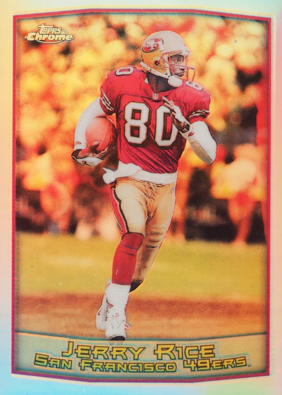 This card is 1 of 5 Jerry Rice's card variations in the 1999 Topps Chrome set being tracked by Sports Card Investor, including Base, Record Numbers - Refractor, Season's Best - Refractor, and Hall Hopefuls - Refractor /100.