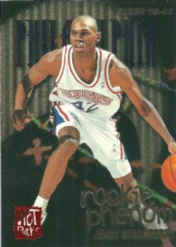 The Jerry Stackhouse 1995 Fleer #7 Rookie Phenom - Hot Pack card is 1 of 9 Jerry Stackhouse's card variations in the 1995 Fleer set being tracked by Sports Card Investor, including #310 Base, #339 Base, #S-1 Stackhouse's Scrapbook, #S-2 Stackhouse's Scrapbook, and #33 Class Encounters.