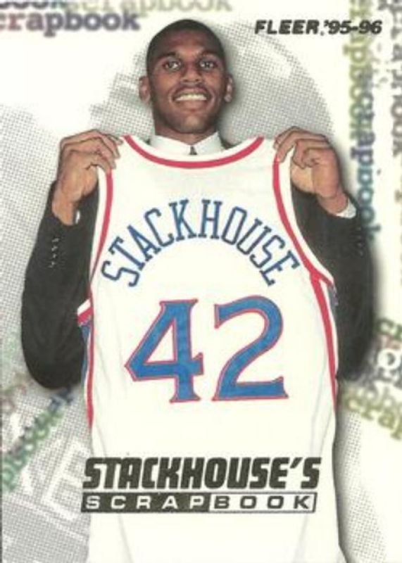 The Jerry Stackhouse 1995 Fleer #S-2 Stackhouse's Scrapbook Rookie card is 1 of 9 Jerry Stackhouse's card variations in the 1995 Fleer set being tracked by Sports Card Investor, including #310 Base, #339 Base, #S-1 Stackhouse's Scrapbook, #33 Class Encounters, and #7 Rookie Phenom.