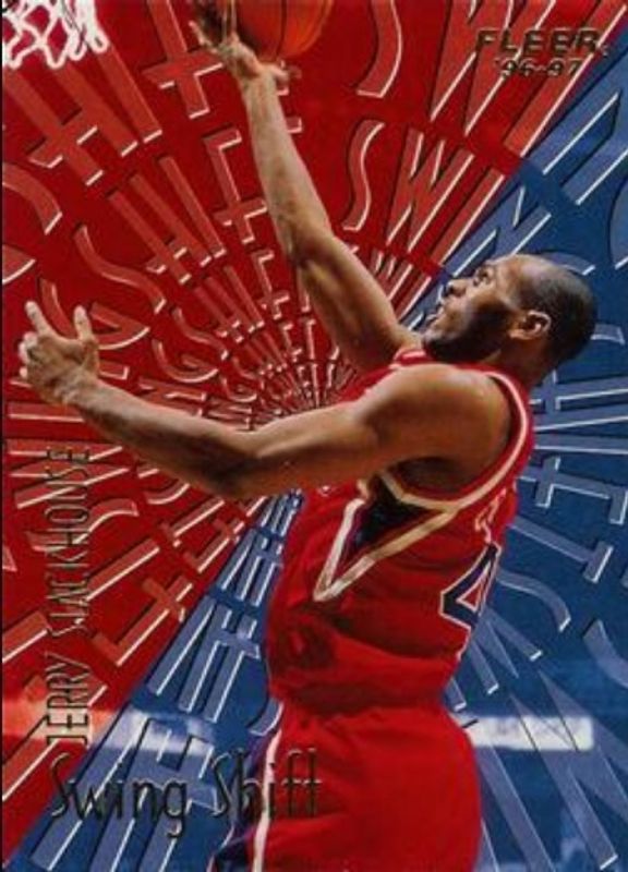 The Jerry Stackhouse 1996 Fleer European #15 Swing Shift card is 1 of 5 Jerry Stackhouse's card variations in the 1996 Fleer European set being tracked by Sports Card Investor, including #139 Base, #307 Base, #83 Base, and #9 Rookie Rewind.