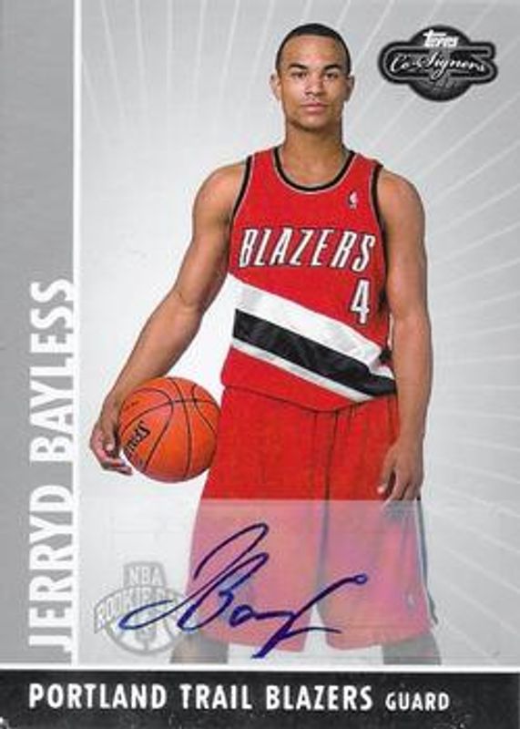 The Jerryd Bayless 2008 Topps Co-Signers #111 Rookie Autographs /50 card is 1 of 35 Jerryd Bayless' card variations in the 2008 Topps Co-Signers set being tracked by Sports Card Investor, including Bronze /299, Silver /199, Gold /99, Hyper Bronze /50, and Hyper Silver /25.