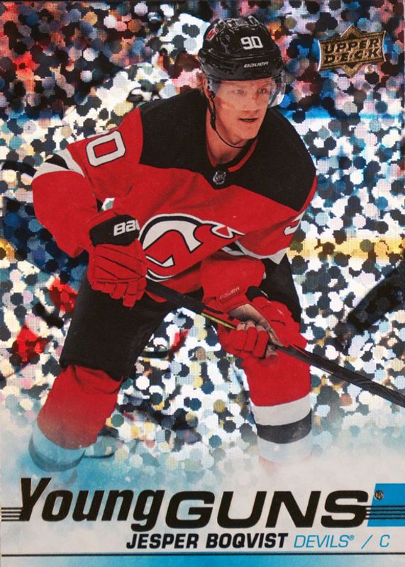 This card is 1 of 7 Jesper Boqvist's card variations in the 2019 Upper Deck set being tracked by Sports Card Investor, including Young Guns Base, Young Guns - Clear Cut, Young Guns - Clear Cut Exclusives, Young Guns - Silver Foil, and Young Guns - UD Exclusives /100.