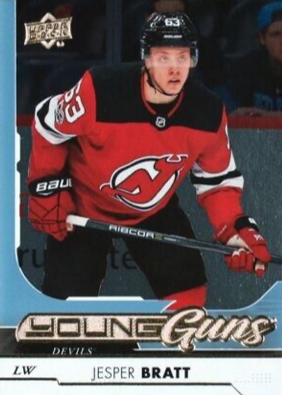 This card is 1 of 32 Jesper Bratt's card variations in the 2017 Upper Deck set being tracked by Sports Card Investor, including Young Guns Base, Young Guns Canvas, Gold Rainbow Foil, Silver Foil, and Young Guns - Clear Cut.