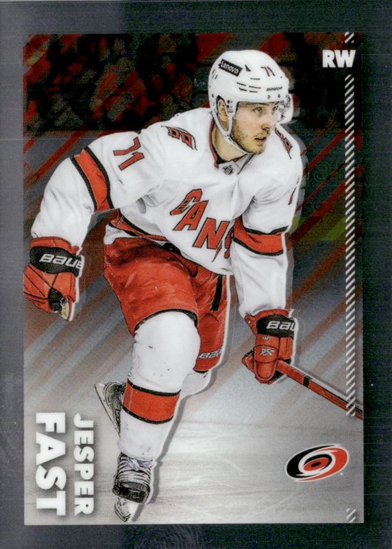 This card is 1 of 6 Jesper Fast's card variations in the 2022 Topps Chrome NHL Sticker Collection set being tracked by Sports Card Investor, including Refractor /99, Gold Refractor /50, Orange Refractor /25, Red Refractor /5, and Superfractor /1.