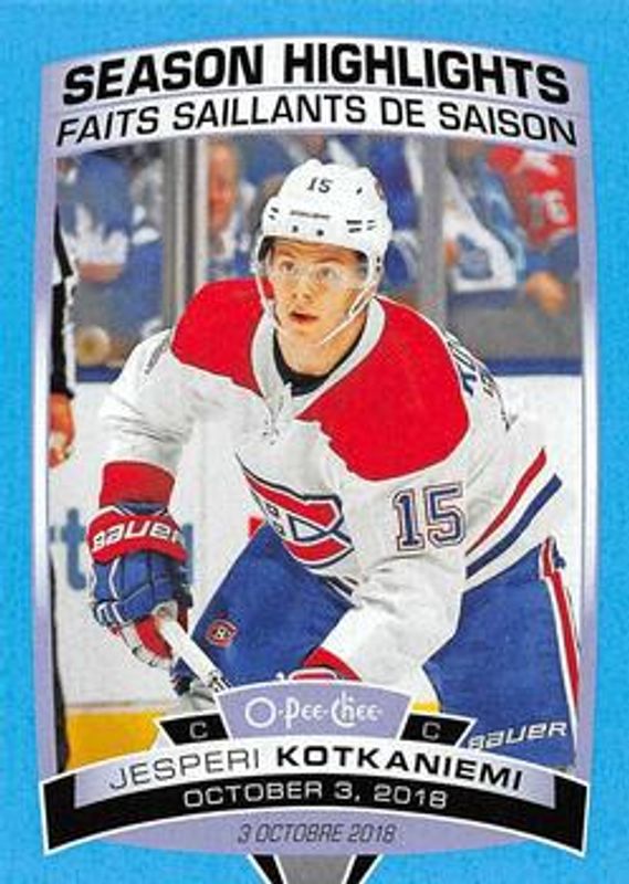Jesperi Kotkaniemi 2019 O-Pee-Chee #592 Blue Border RAW Price Guide