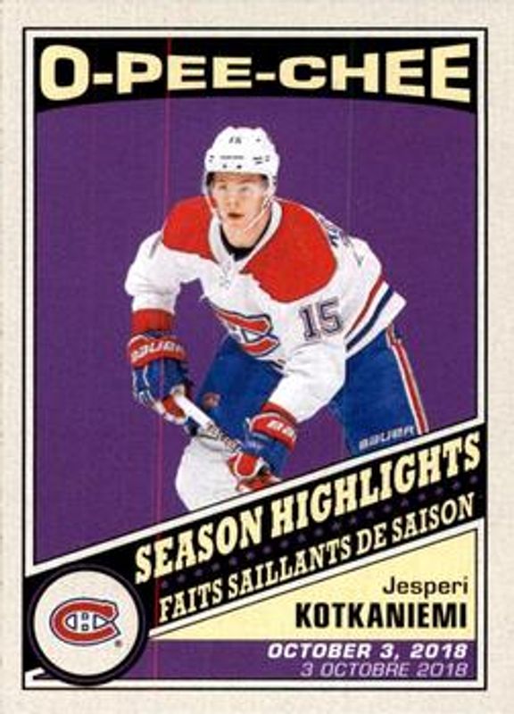 Jesperi Kotkaniemi 2019 O-Pee-Chee #592 Retro Blank Back RAW Price Guide