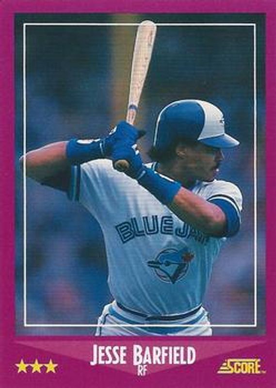 The Jesse Barfield 1988 Score #8 Base card is 1 of 2 Jesse Barfield's card variations in the 1988 Score set being tracked by Sports Card Investor, including Glossy.