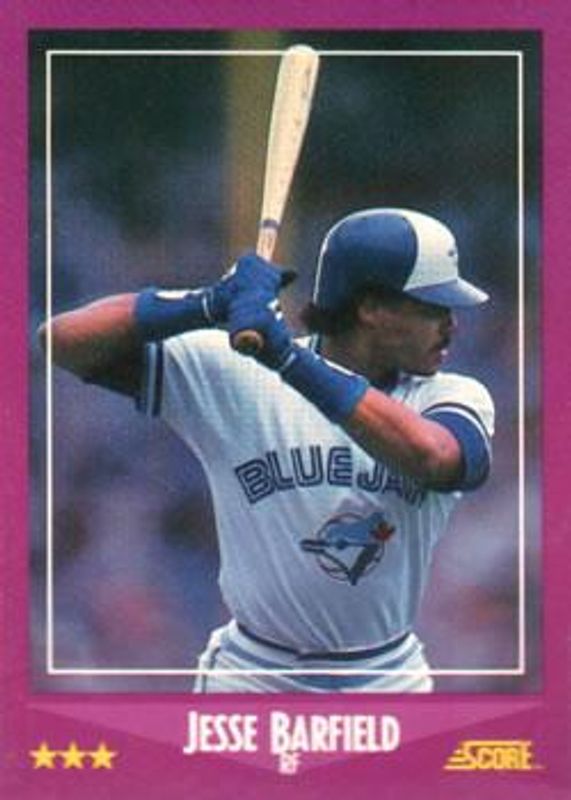 The Jesse Barfield 1988 Score #8 Glossy card is 1 of 2 Jesse Barfield's card variations in the 1988 Score set being tracked by Sports Card Investor, including Base.