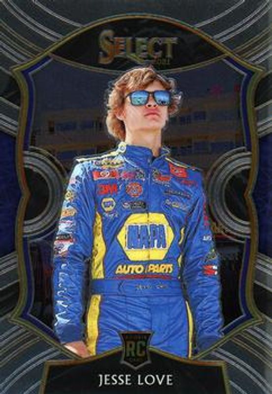 The Jesse Love 2021 Chronicles NASCAR #17 Select card is 1 of 52 Jesse Love's card variations in the 2021 Chronicles NASCAR set being tracked by Sports Card Investor, including Base, Blue /199, Red /99, Purple /25, and Gold /10.