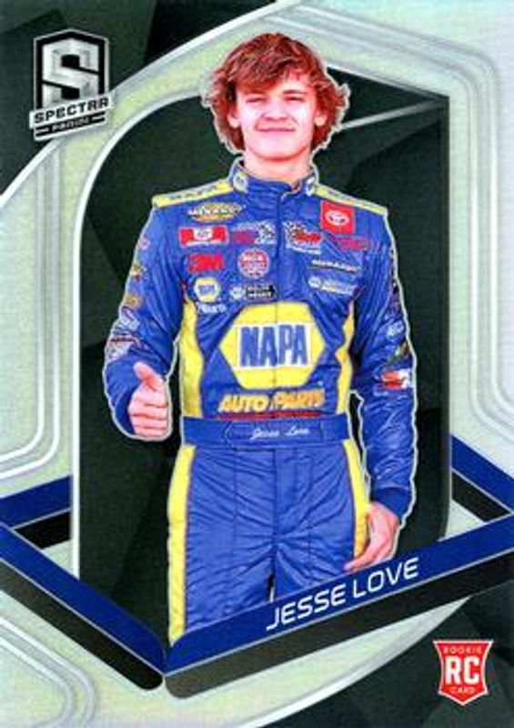 The Jesse Love 2021 Chronicles NASCAR #31 Spectra card is 1 of 52 Jesse Love's card variations in the 2021 Chronicles NASCAR set being tracked by Sports Card Investor, including Base, Blue /199, Red /99, Purple /25, and Gold /10.