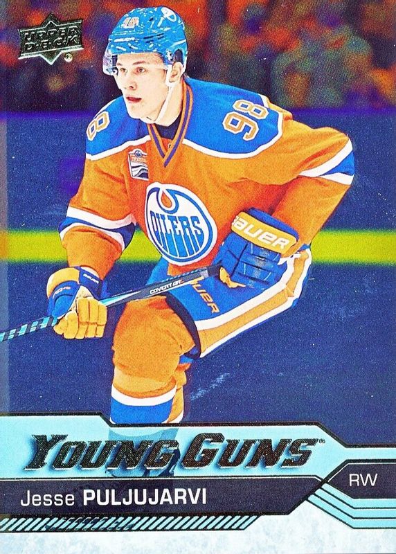 The Jesse Puljujarvi 2016 Upper Deck #225 Young Guns - Silver Foil Rookie card in Raw condition has not changed in price in the last 30 days and was last sold for $6.95 .