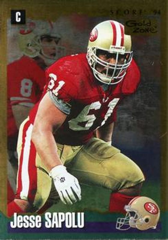 The Jesse Sapolu 1994 Score #162 Gold Zone card is 1 of 2 Jesse Sapolu's card variations in the 1994 Score set being tracked by Sports Card Investor, including Base.