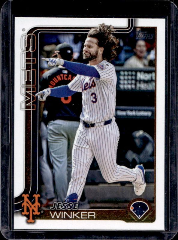 The Jesse Winker 2025 Topps #629 Base card is 1 of 67 Jesse Winker's card variations in the 2025 Topps set being tracked by Sports Card Investor, including Aqua Holo Foil, Diamante Foil, Holo Foil, Pink Diamante Foil, and Pink Holo Foil.