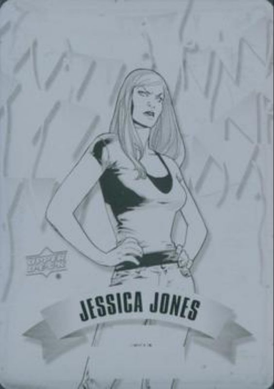 The Jessica Jones 2020 Upper Deck Marvel Annual #11 Printing Plate Black /1 card is 1 of 8 Jessica Jones' card variations in the 2020 Upper Deck Marvel Annual set being tracked by Sports Card Investor, including Base, Gold, Red, Printing Plate Cyan /1, and Printing Plate Magenta /1.
