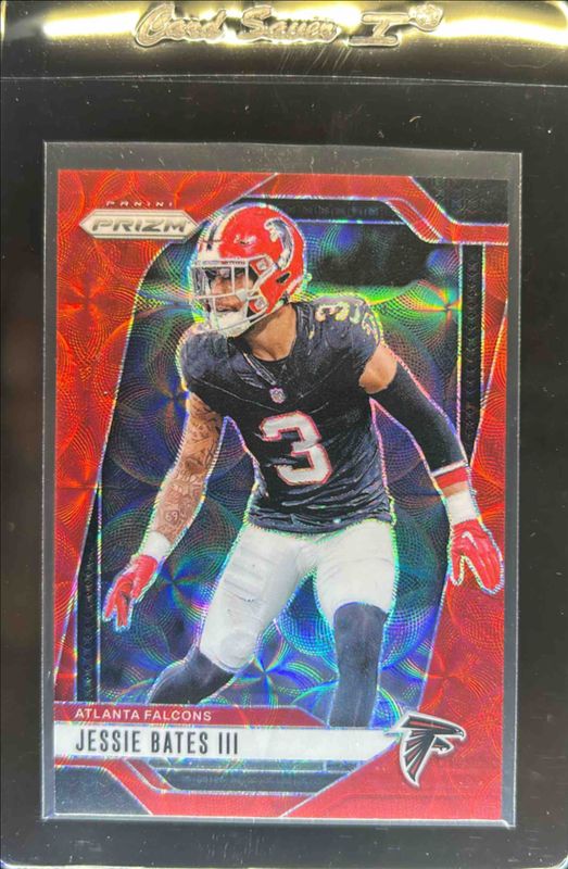 The Jessie Bates III 2024 Prizm #14 Choice Red /20 card is 1 of 83 Jessie Bates III's card variations in the 2024 Prizm set being tracked by Sports Card Investor, including Base, Choice Blue Yellow Green, Choice Silver, Disco, and Green.