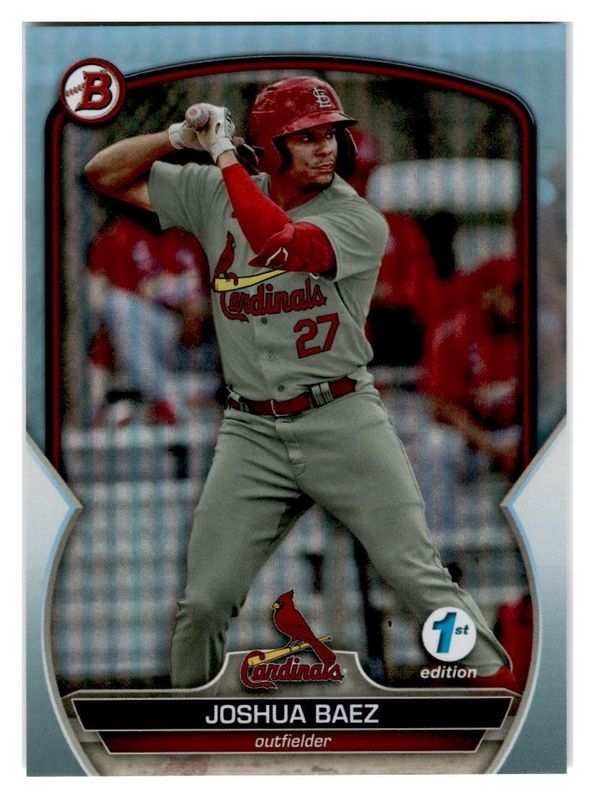 The Jesus Baez 2023 Bowman 1st Edition #BPPF-12 Sky Blue Foil card is 1 of 9 Jesus Baez's card variations in the 2023 Bowman 1st Edition set being tracked by Sports Card Investor, including Base, Blue Foil /150, Yellow Foil /75, Gold Foil /50, and Orange Foil /25.