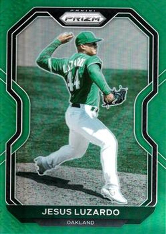 The Jesus Luzardo 2021 Prizm #83 Green card is 1 of 43 Jesus Luzardo's card variations in the 2021 Prizm set being tracked by Sports Card Investor, including Base, Blue, Blue Velocity, Carolina Blue, and Cosmic Haze.