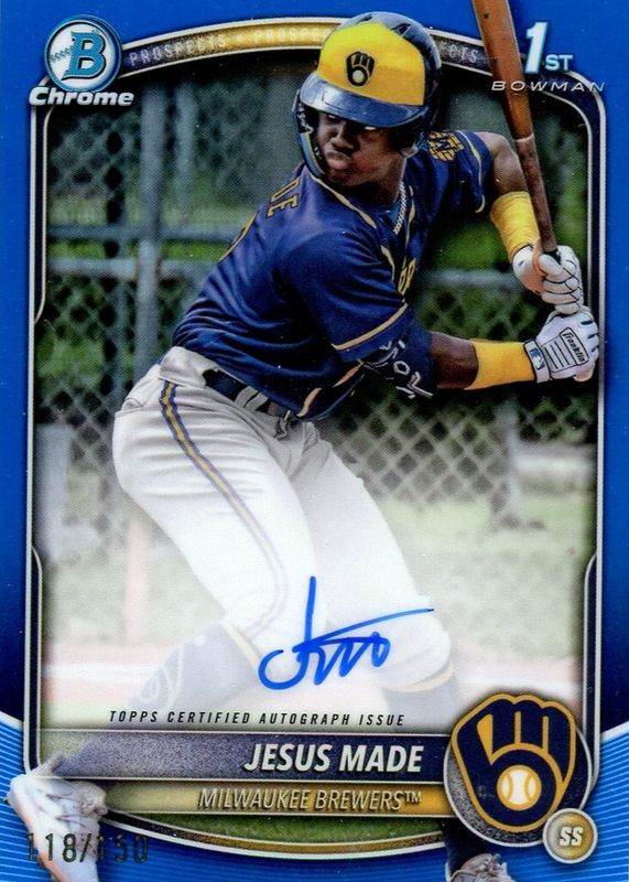 2025 Bowman - Chrome Prospect Autographs Jesus Made #CPA-JM Blue Refractor /150