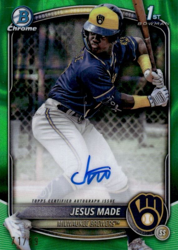 2025 Bowman Chrome Jesus Made 1st Bowman Green Lava 1st Auto /99 Brewers