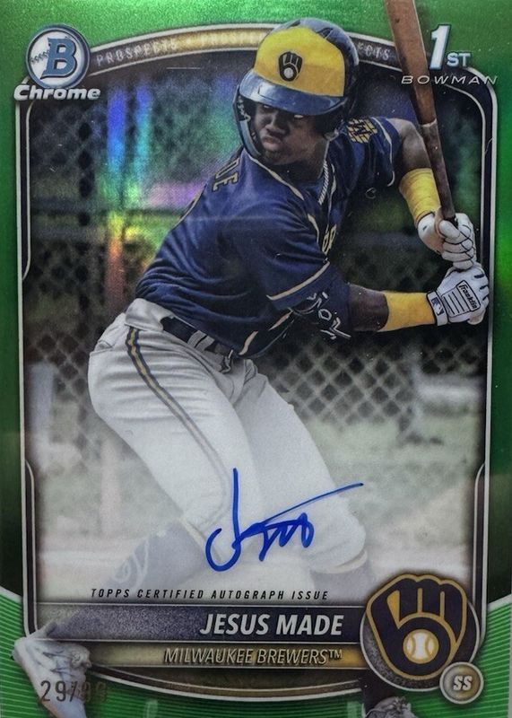 2025 Bowman Chrome Jesus Made 1st Bowman Green Refractor Auto /99 Brewers Auto
