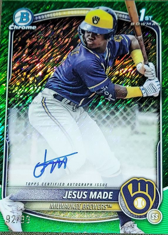 2025 Bowman Chrome Jesus Made 1st Bowman Green Shimmer Rookie Auto /99 Brewers