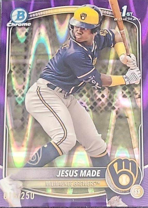 2025 Bowman chrome 1st Jesus Made Purple Raywave Refractor #BCP-50 Brewers /250