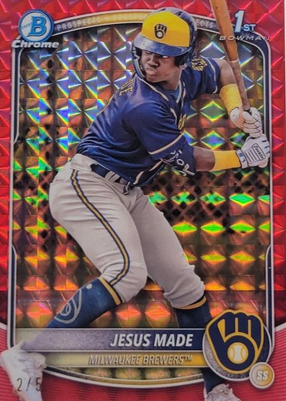 Jesus Made 2025 Bowman #BCP-50 Chrome Prospects - Red Geometric Refractor /5 (1st) RAW Price Guide