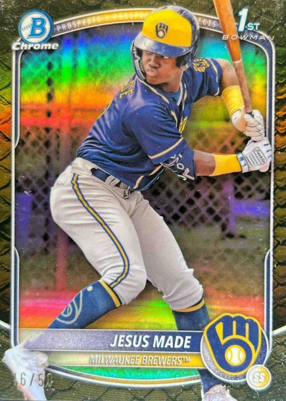 2025 Bowman Chrome Jesus Made 1st Gold Reptilian /50 #BCP-50 Brewers