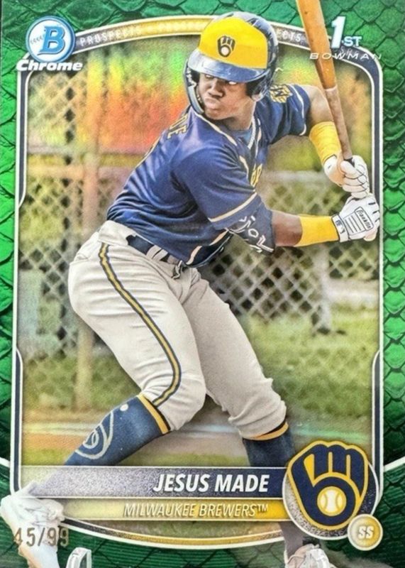 2025 JESUS MADE 1st Bowman Green Reptilian Ref /99 Chrome Prospect Ref Brewers🔥