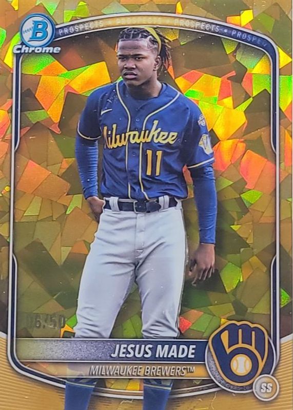 The Jesus Made 2025 Bowman Chrome Sapphire Edition #BCP-245 Prospects Image Variation - Gold /50 card in Raw condition has moved down -$18.50 (-15.5%) in the last 30 days and was last sold for $101.00 .