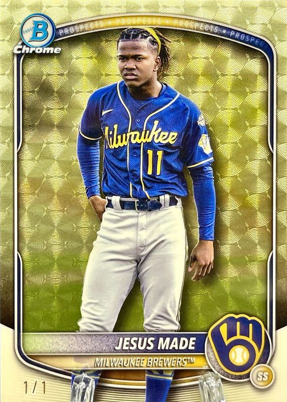 This card is 1 of 35 Jesus Made's card variations in the 2025 Bowman Chrome Sapphire Edition set being tracked by Sports Card Investor, including Prospects, Prospects Image Variation, Prospects - Yellow /75, Prospects - Gold /50, and Prospects Image Variation - Gold /50.
