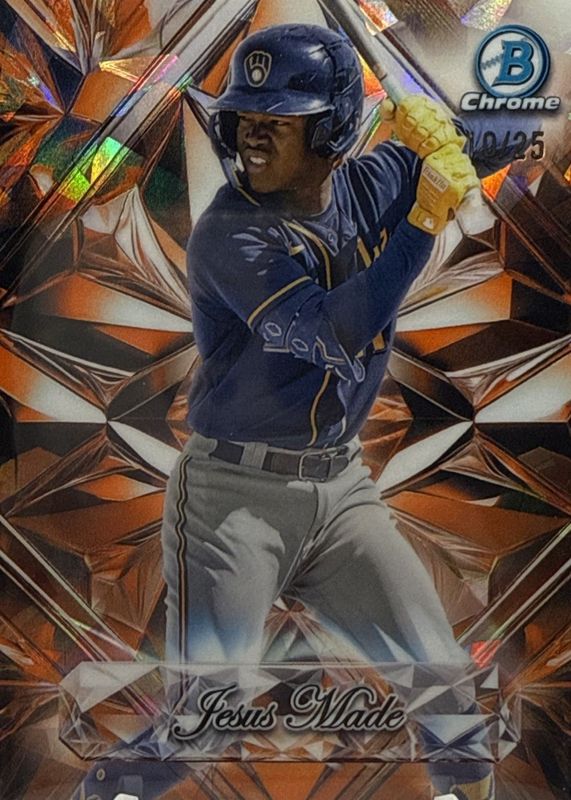 This card is 1 of 35 Jesus Made's card variations in the 2025 Bowman Chrome Sapphire Edition set being tracked by Sports Card Investor, including Prospects, Prospects Image Variation, Prospects - Yellow /75, Prospects - Gold /50, and Prospects Image Variation - Gold /50.