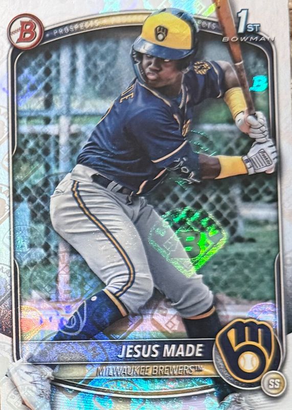 This card is 1 of 125 Jesus Made's card variations in the 2025 Bowman set being tracked by Sports Card Investor, including Chrome Prospects (1st), Prospects (1st), Chrome Prospects - Gumball Refractor (1st), Chrome Prospects - Mini Diamond Refractor (1st), and Chrome Prospects - Peanuts Refractor (1st).